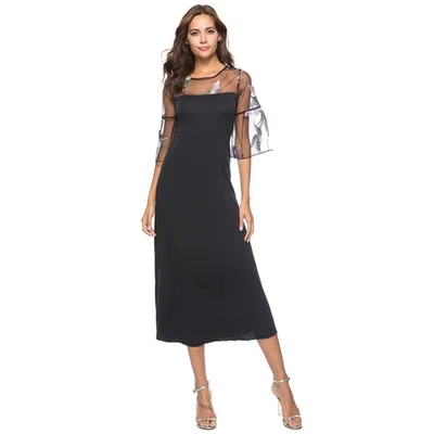 Кружевное платье с вышивкой, женское черное платье с расклешенными