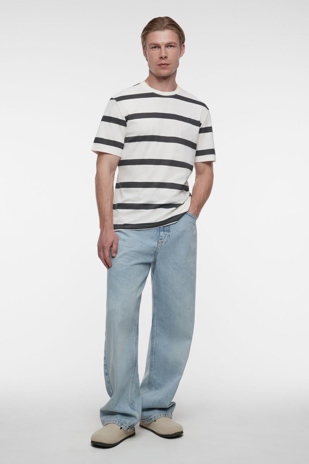 Футболка прямая хлопковая с принтом в полоску 2329413429, цвет: черный