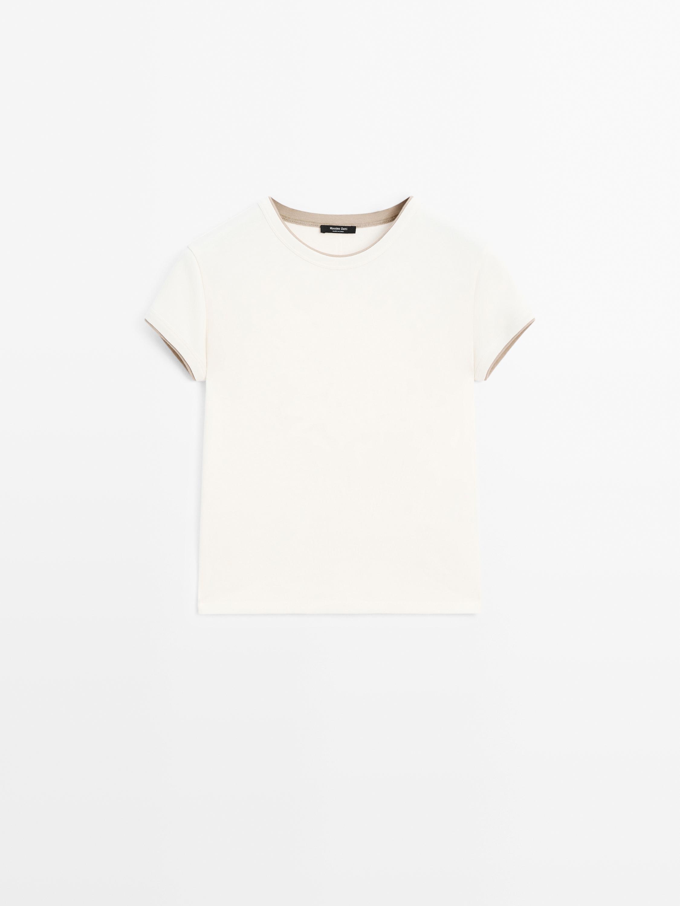 Футболка зі 100%-ї бавовни з контрастною окантовкою в рубчик · Екрю
