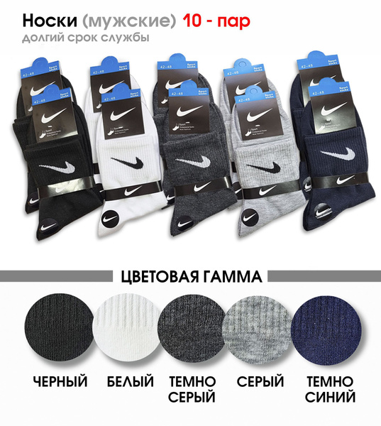 Комплект носков Мужской Nike, размер 41, 42 Хлопок, Полиамид Бег