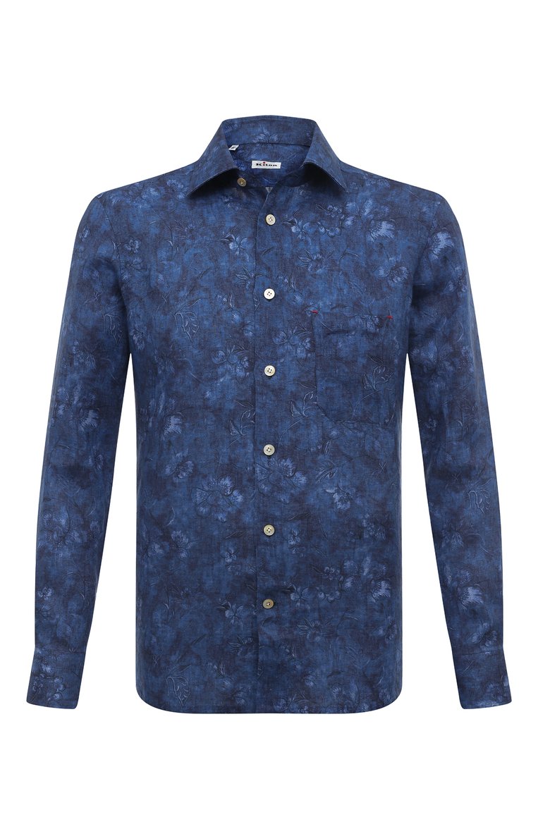 Мужская синяя льняная рубашка KITON купить в интернет-магазине ЦУМ, арт
