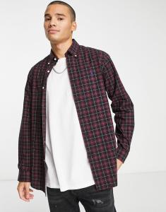 Бордовая/темно-синяя классическая рубашка из поплина в клетку Polo