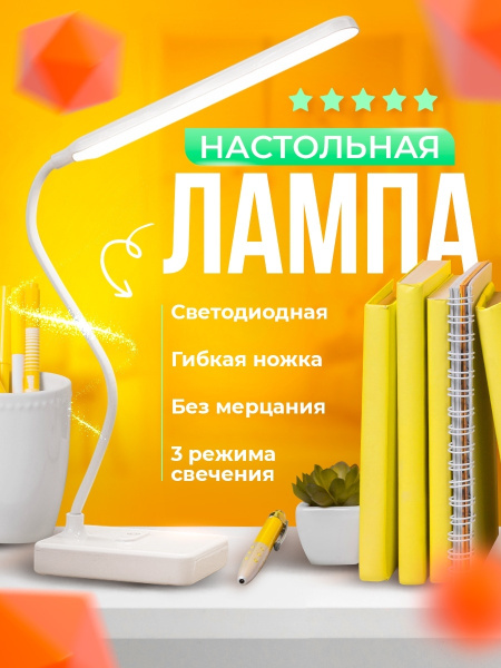 Лампа настольная, светильник декоративный на гибкой ножке белый купить