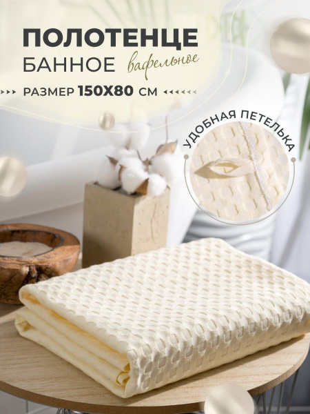 Полотенце банное MASO home Для бани Хлопок, Вафельное полотно 80x150 см