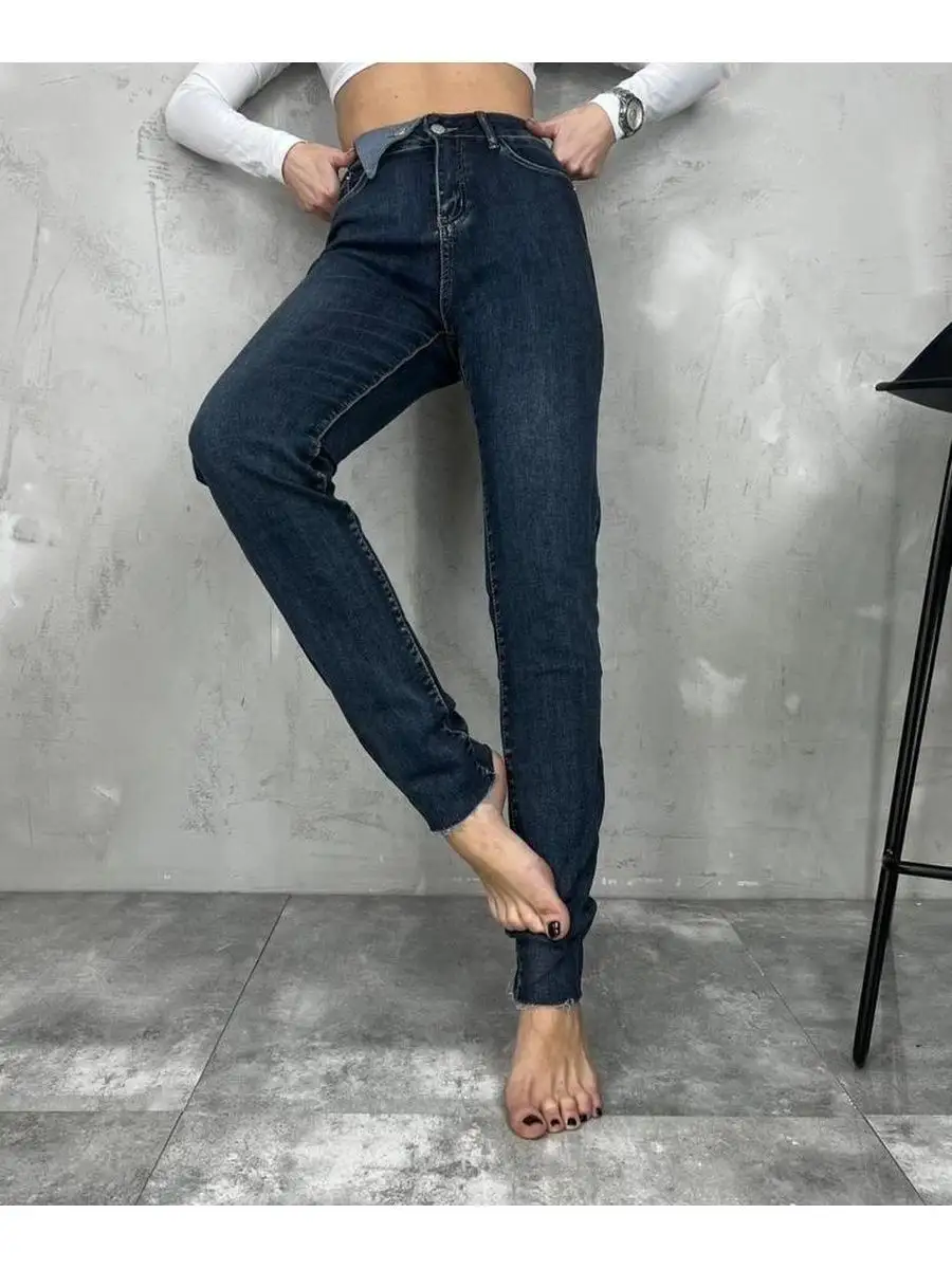 Джинсы мом зауженные женские с высокой посадкой